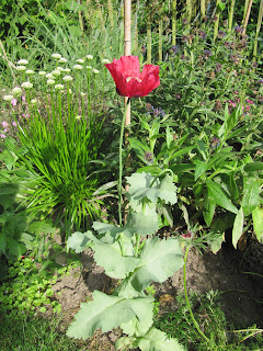 In de tuin staat een prachtige papaver, kan me niet herrinneren dat ik die daar gezaaid heb, maar van mij mag die blijven.